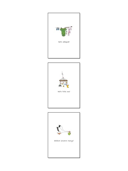 Van een oievaar op missie tot een zacht waslijntje vol mini sokjes — elke kaart is met liefde ontworpen om dat bijzondere gevoel van een nieuwe aankomst te vangen. Lief, zacht en altijd met een glimlach.